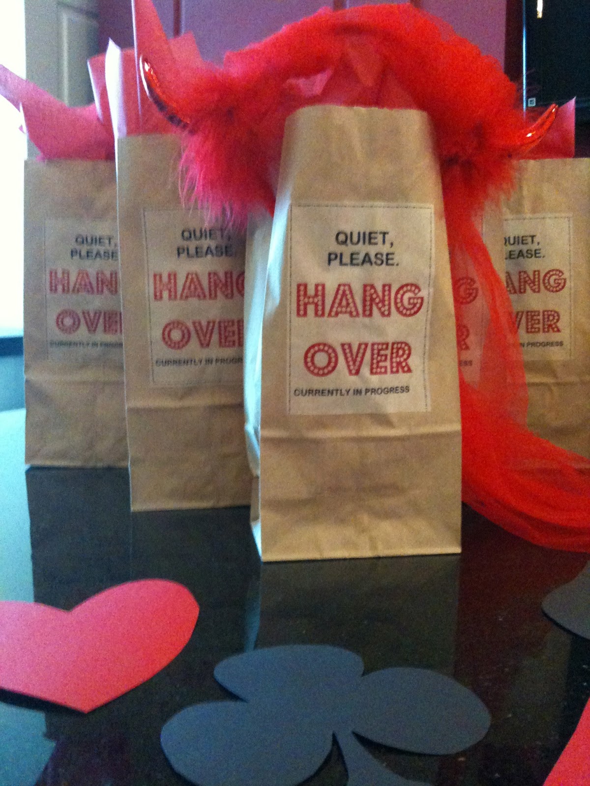 DIY- Even the least creative minds can save money DIY-ing instead of paying for the tacky crap they try to sell for showers and bachelorettes. For the bachelorette, make yourself some real classy shit, like barf bags. And for shower, it’s not a party until poofs are present.
