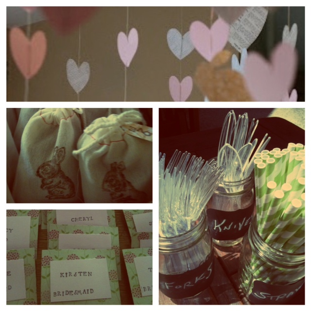 Don’t DIAY- While you can save a lot of loot DIY-ing, don’t DIAY… Do It ALL Yourself. Unless you have 9 arms, you’ll epically fail. Delegate off what you suck at most. For me, that’s cooking. So I asked the other BMs to bring food and booze to the shower, and voila! The buffet table was full, and the champs was poured… all without a kitchen fire or an empty wallet on my behalf.