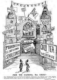 A nation which had only thirty years previously stopped Manifesting its Destiny thought that the best thing to do would be to take away a vice which most people not only indulged, but depended on. The decision to ready the axe and destroy the demon drink was a culture collectively forgetting its senses and turning a blind eye to the worst excesses of Capitalism, making a dynamic economic system indistinguishable from mob rule.