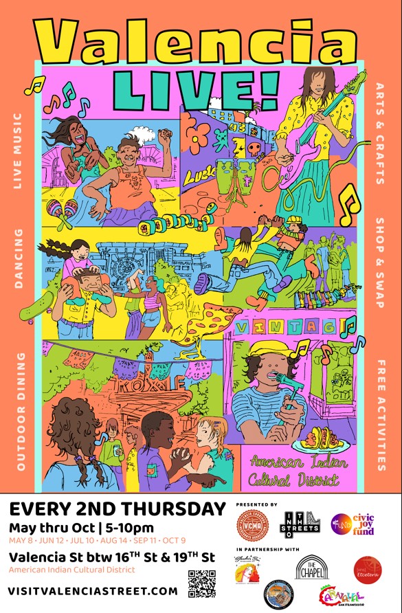 Valencia LIVE! is a program of the Valencia Corridor Merchants Association presented in partnership with Into The Streets with support from the Civic Joy Fund.